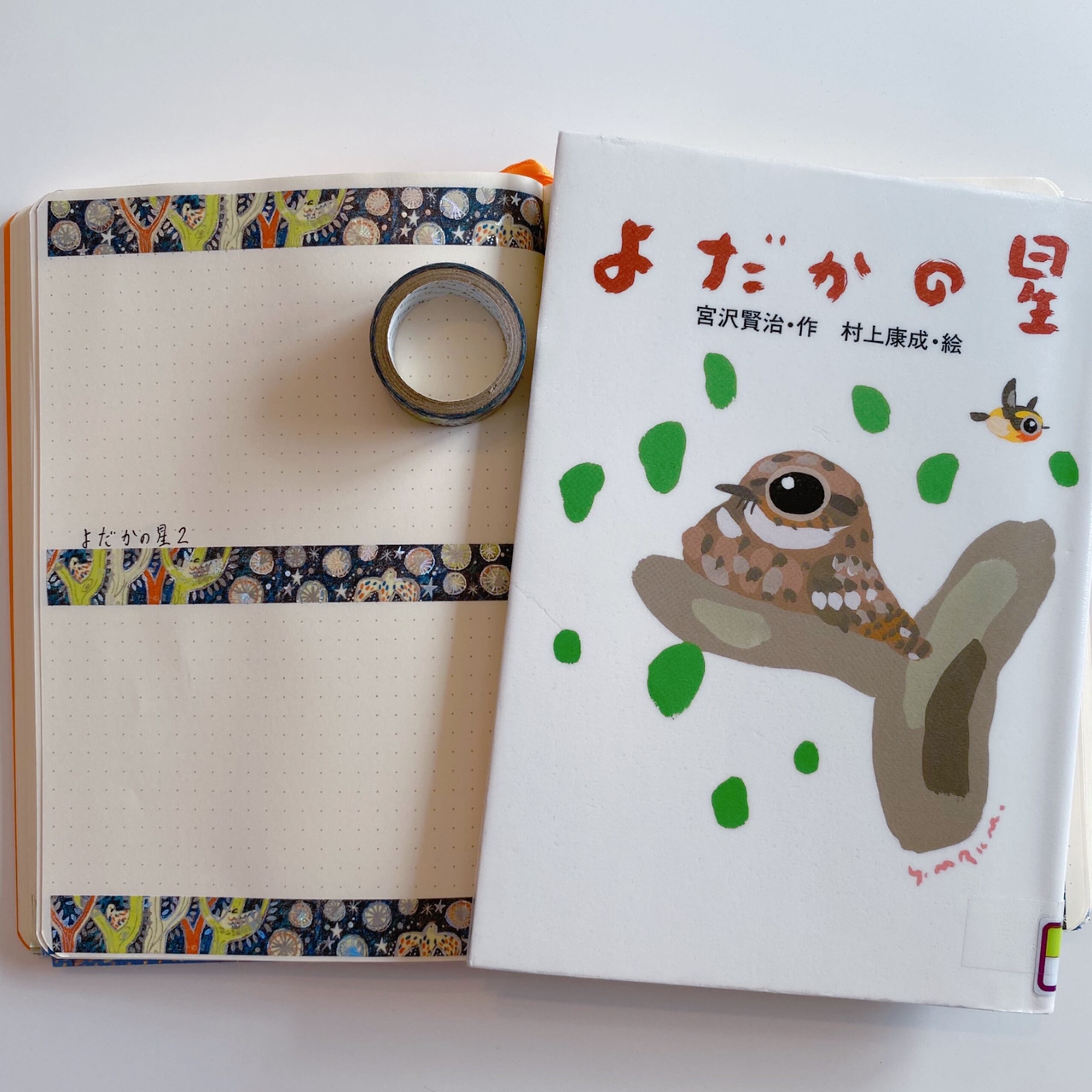 こちらのよだかの星には、別れを告げるシーンと夜鷹が描かれております٩(*´︶`*)۶